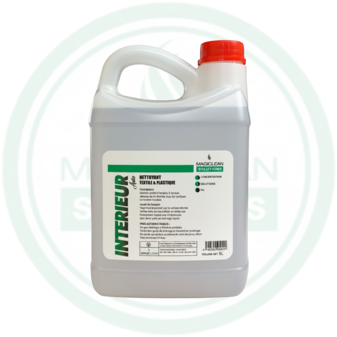 Le Nettoyant Textile & Plastique 5 L est une solution professionnelle conçue pour le nettoyage en profondeur de l’habitacle automobile. Sa formule performante élimine efficacement les taches, la poussière, les traces de gras et les saletés incrustées, tout en respectant les matériaux. Il est idéal pour le nettoyage des sièges en tissu, moquettes, tapis, ciels de toit et plastiques intérieurs tels que tableaux de bord, panneaux de porte et consoles. Il ravive les couleurs, laisse un aspect propre et uniforme et neutralise les mauvaises odeurs sans laisser de résidus collants. Grâce à son format 5 litres, ce produit est économique et parfaitement adapté aux professionnels du nettoyage automobile, stations de lavage et centres de detailing, tout en restant utilisable par les particuliers exigeants.